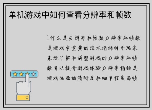 单机游戏如何刷分 在玩单机游戏时,很多玩家都希望能够刷分,提高自己的游戏水平。本文将从多个方面详细介绍如何刷分,帮助玩家提升自己的游戏技巧和成绩。 1. 游戏前的准备 在开始游戏之前,玩家需要做一些准备工作,以确保能够有更好的游戏体验和刷分效果。玩家应该熟悉游戏的规则和操作方式,了解游戏中的各种技能...