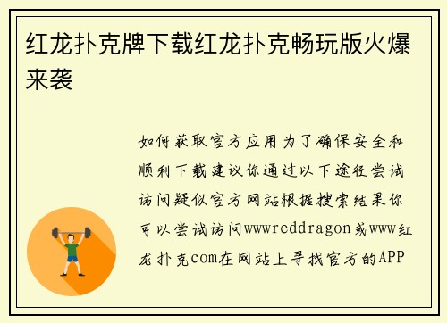 关于你关心的红龙扑克(Red Dragon Poker)是否靠谱的问题,我查询了多个网络信息来源。需要提醒你的是,目前网络上关于它的信息比较复杂,暂时没有找到其官方的明确资质说明,因此你在考虑使用时需要格外谨慎。 下面这个表格,我帮你梳理了当前宣传资料中提到的主要特点和需要注意的地方,供你参考。 |...